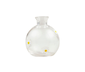 Glass bud vase with inlaid icon exterior.