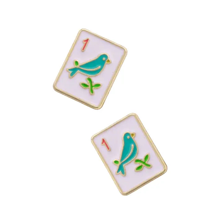 Minimal yet meaningful, these white Sparrow tile stud earrings are a subtle nod to Mahjong heritage. Lightweight and versatile, they’re perfect for everyday wear.