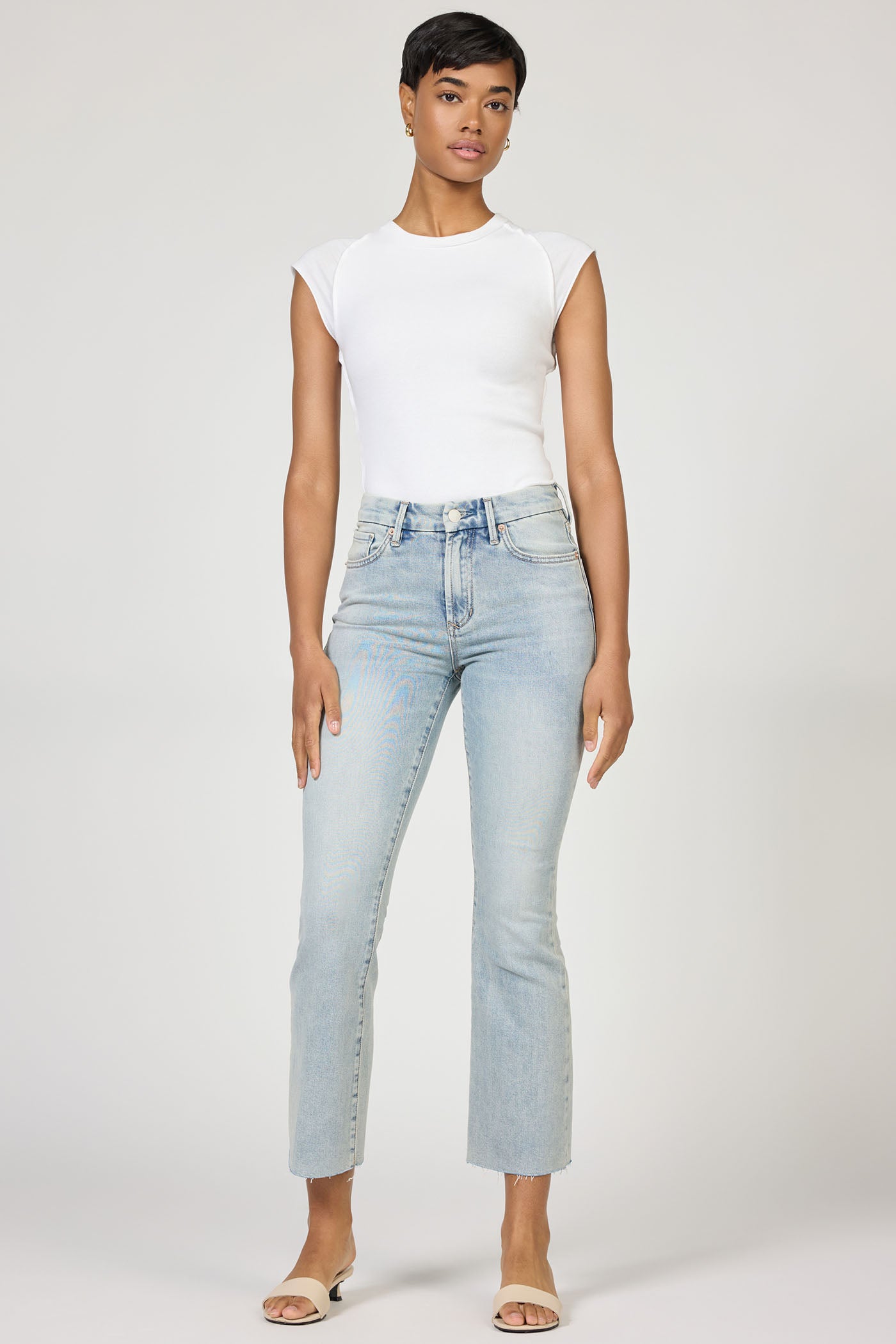Jeanne mid-rise with a raw cut hem that perfectly blends a modern silhouette with everyday comfort.