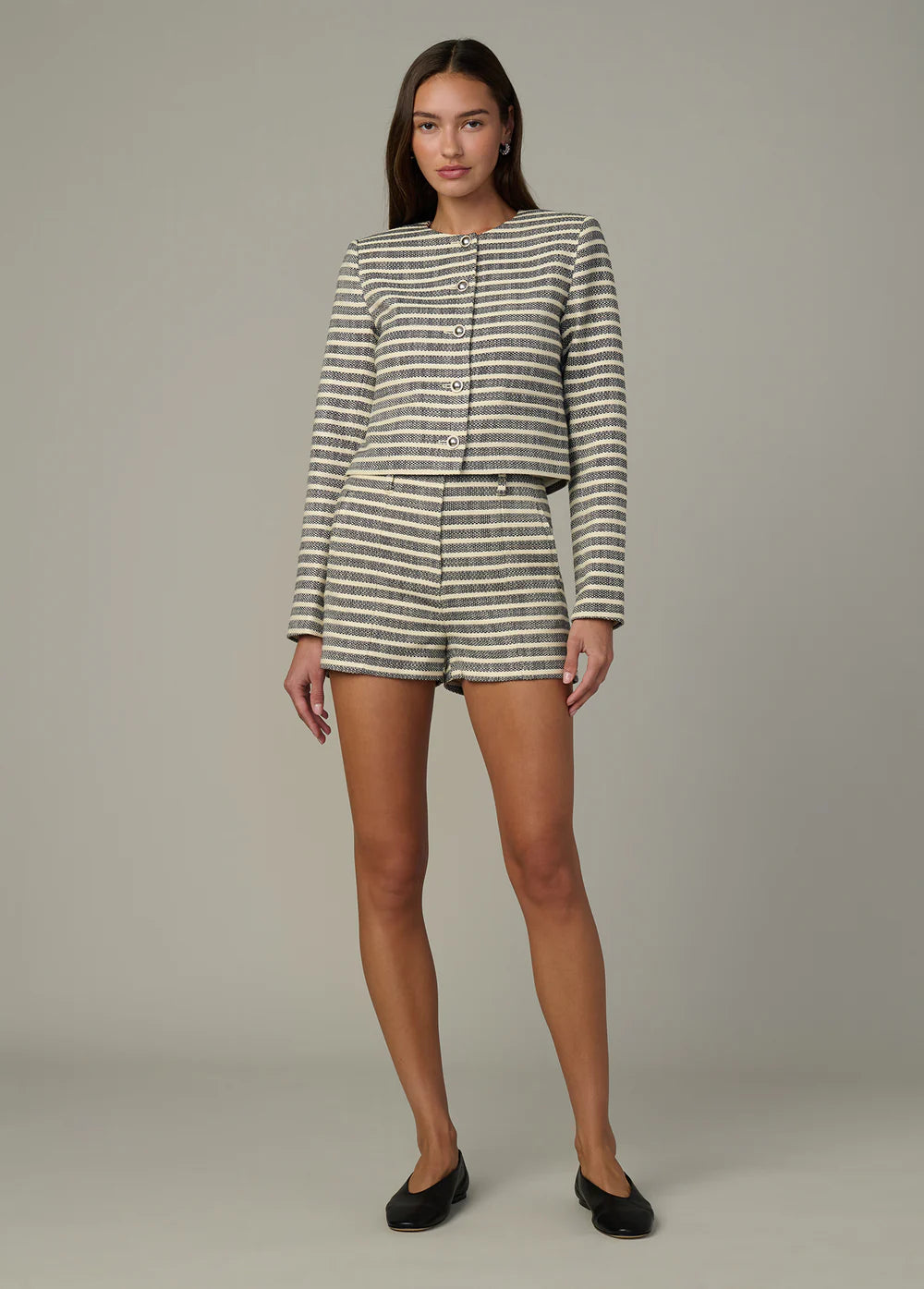 A high-rise, tailored short with clean details. Wear it as a set with our Talia Cardigan Jacket.