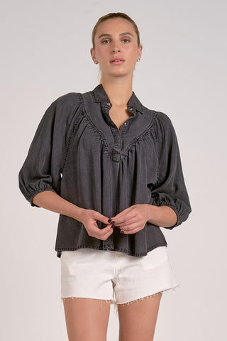 Galina Button Up Long Sleeve Relaxed Fit Shirt Raspberry