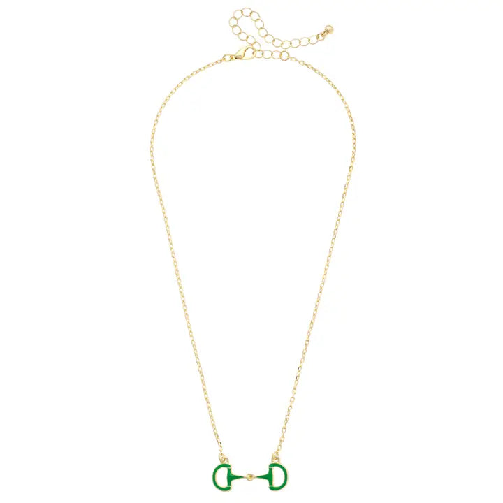 A sleek necklace featuring an enamel-accented horsebit pendant. Modern with classic equestrian roots.