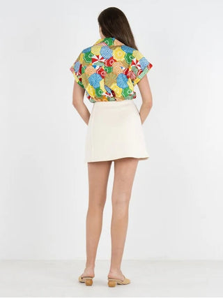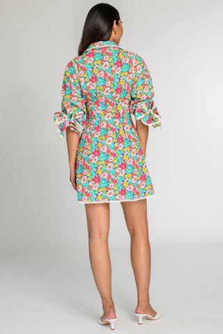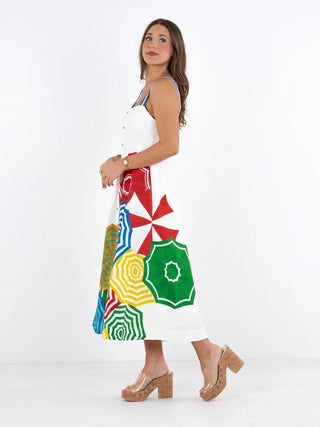 Cotton Stripe Print Fit and Flare Shirt Dress with Reversible Sash