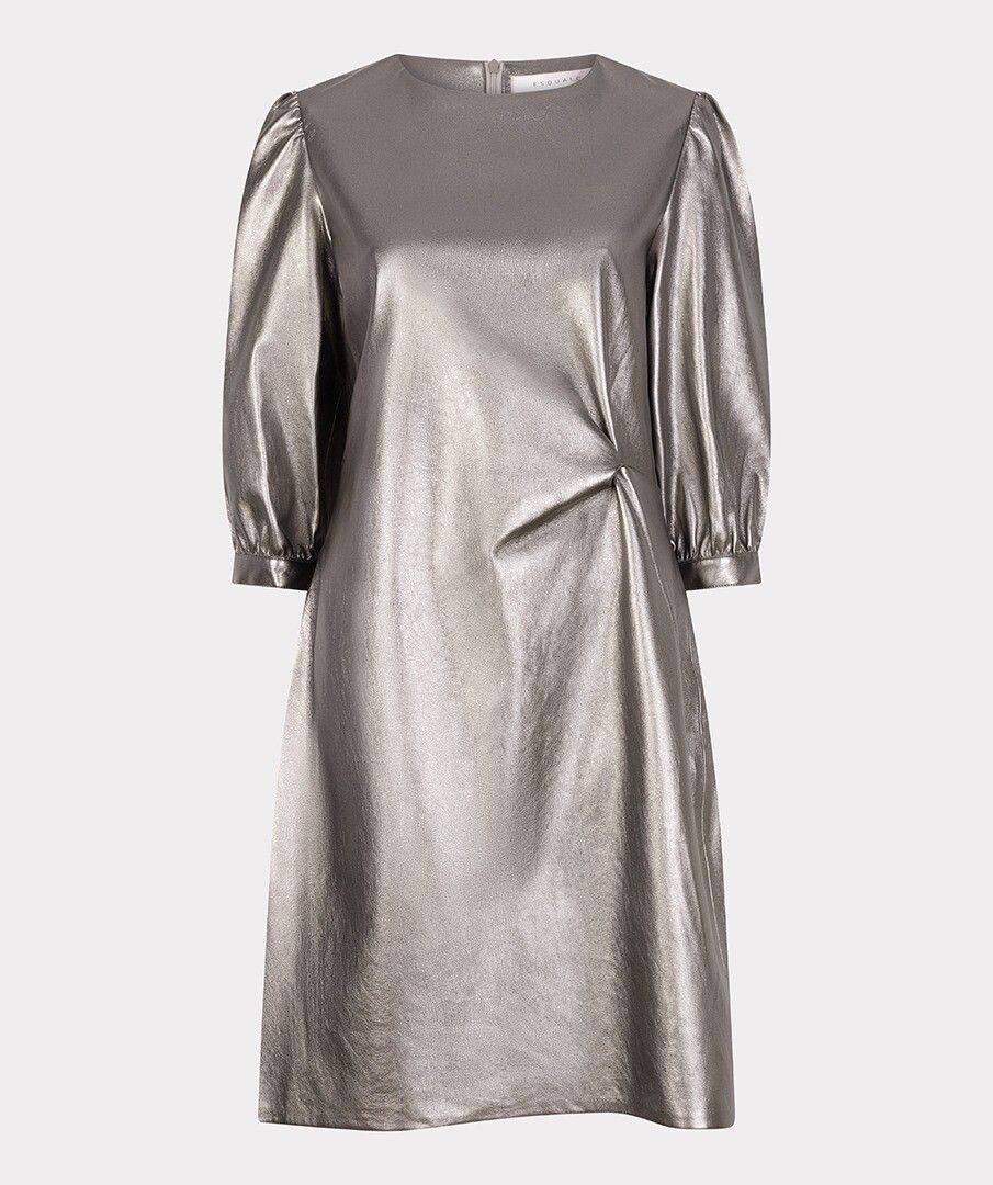 Elegant PU dress with balloon sleeves. The dress has a zipper and a small slit at the back.
