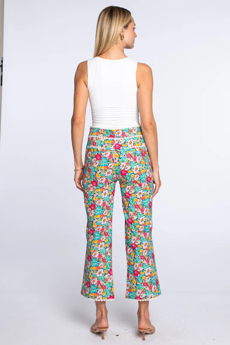 Our Jojo pants are back this season in our darling Meadow Muse print. This flattering stretch twill is super lightweight, perfect for warm days that turn into breezy evenings.