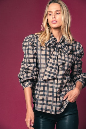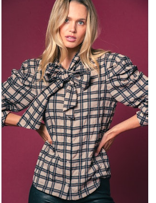 Classic Parisian charm meets modern femininity in The French Bow Shirt. Designed in a timeless checkered pattern, this blouse features a romantic self-tie bow at the neckline—instantly elevating your look with chic, effortless sophistication. The tailored silhouette skims just right, while subtle gathers at the shoulders and full-length sleeves add soft structure and a touch of vintage-inspired elegance.
