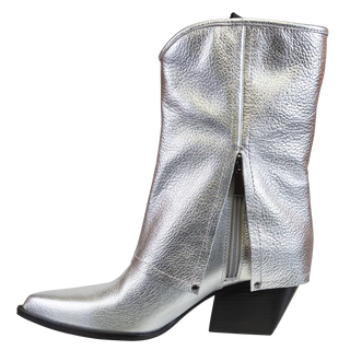 CURIO in SILVER Heeled Mid Shaft Boots