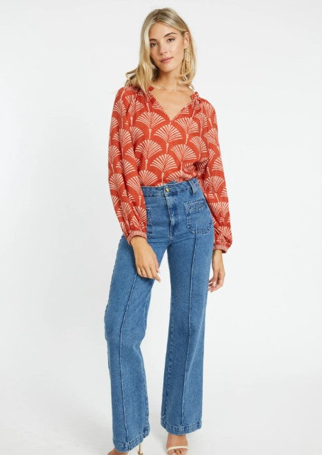 Designed with a relaxed fit, this long-sleeve top features a flattering V-neckline adorned with a delicate ruffle, adding a subtle touch of femininity. Whether paired with denim or dressed up for an evening out, the Miki Top is effortlessly versatile and stylish.